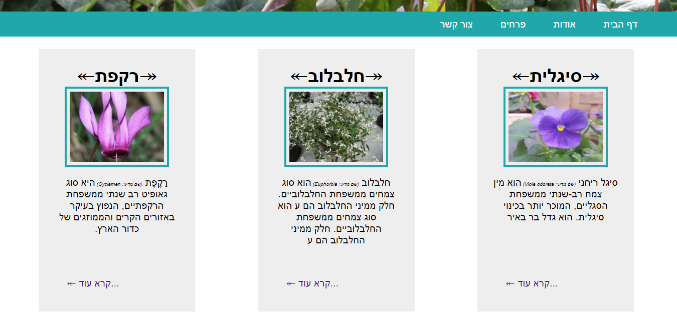 - שלבו באתר שימוש באלמנטים החדשים שלמדנו sectioning – בעיקר header footer atricle